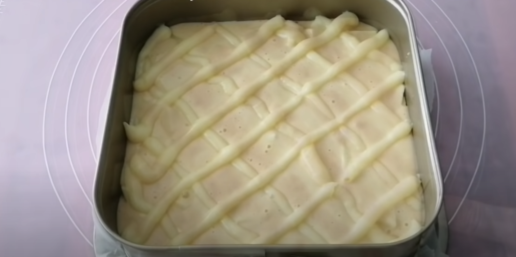 5. Gotowy krem przełóż do rękawa cukierniczego lub szprycy, po czym zrób kratkę na cieście.