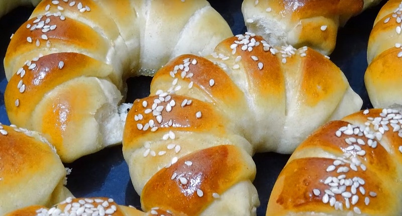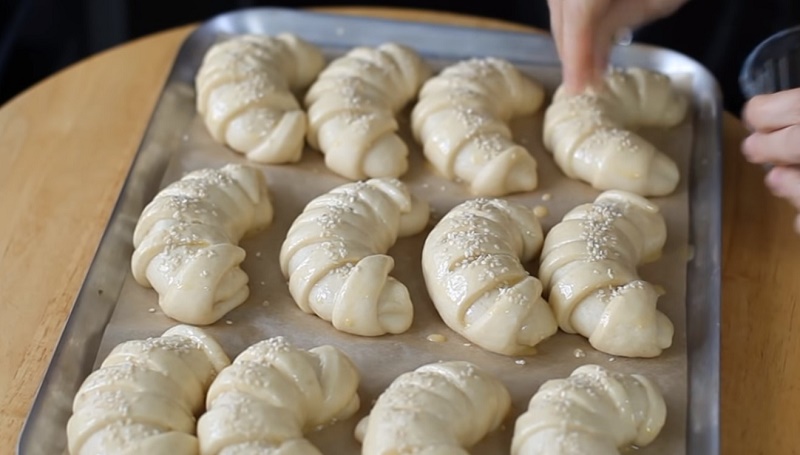 8.Papierem do pieczenia wyłóż formę i układaj na niej przygotowane rogaliki.