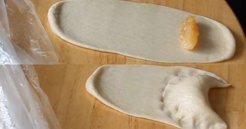 6.Za pomocą łyżki nałóż nadzienie na brzeg, następnie zagnieć dokładnie brzegi, aby w środku zatrzymać nadzienie.