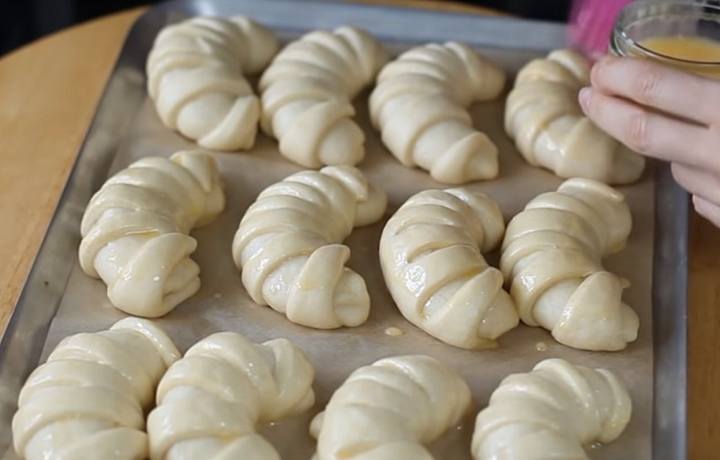9. Roztrzepanym jajkiem posmaruj rogaliki.