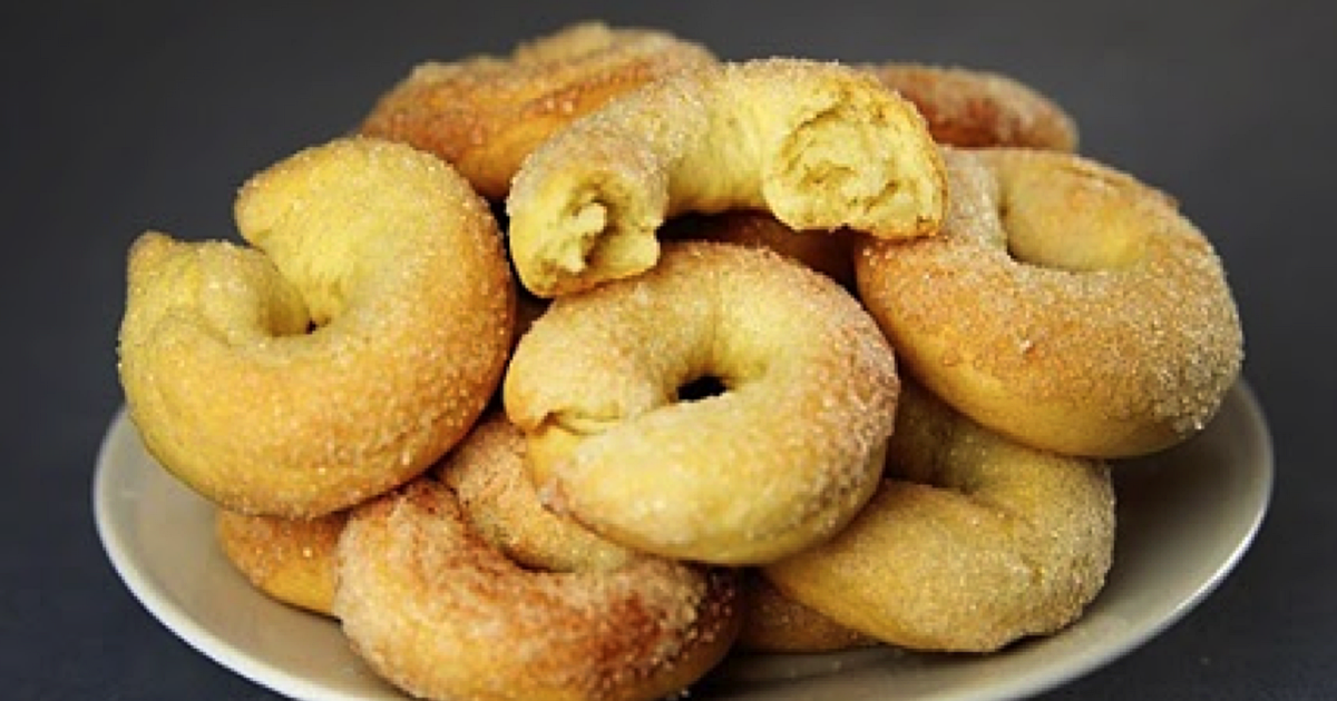 3. Z gotowego ciasta, uformuj wałeczki i połącz ich końce ze sobą. Poukładaj rogaliki na blaszce, wyłożonej papierem do pieczenia. Wierzch rogalików, wysmaruj roztrzepanym jajkiem i posyp cukrem.
