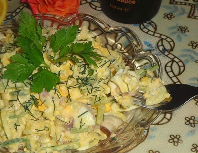 5. Wymieszaj marynowaną cebulę z jajkami i majonezem (lub śmietaną). Przypraw do smaku, według własnego uznania.