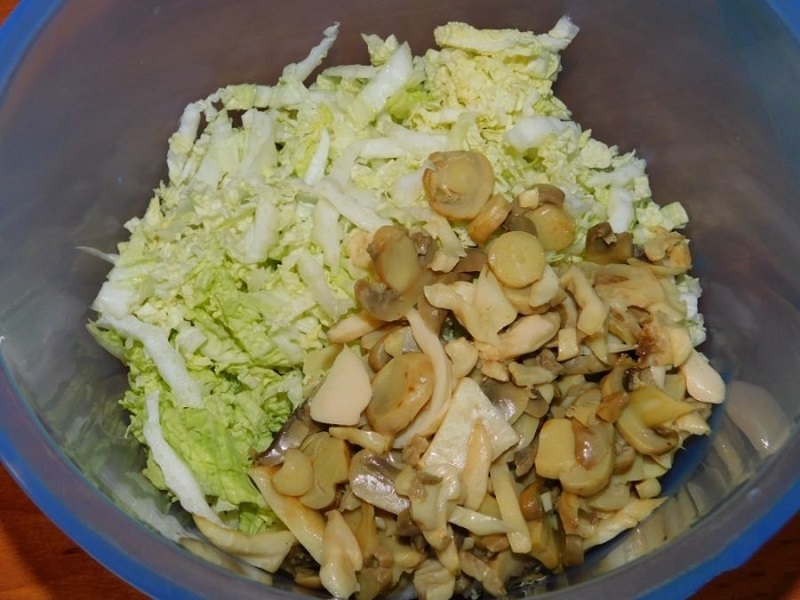 Zaczynamy od podudzia – nacieramy go przyprawami, które lubimy i pieczemy w piekarniku nagrzanym do 180 stopni przez około 35 minut. Mięso należy pokroić na duże kawałki. Pieczarki myjemy, obieramy, a następnie kroimy na plastry. Smażymy na patelni na oliwie, aż się zrumienią.