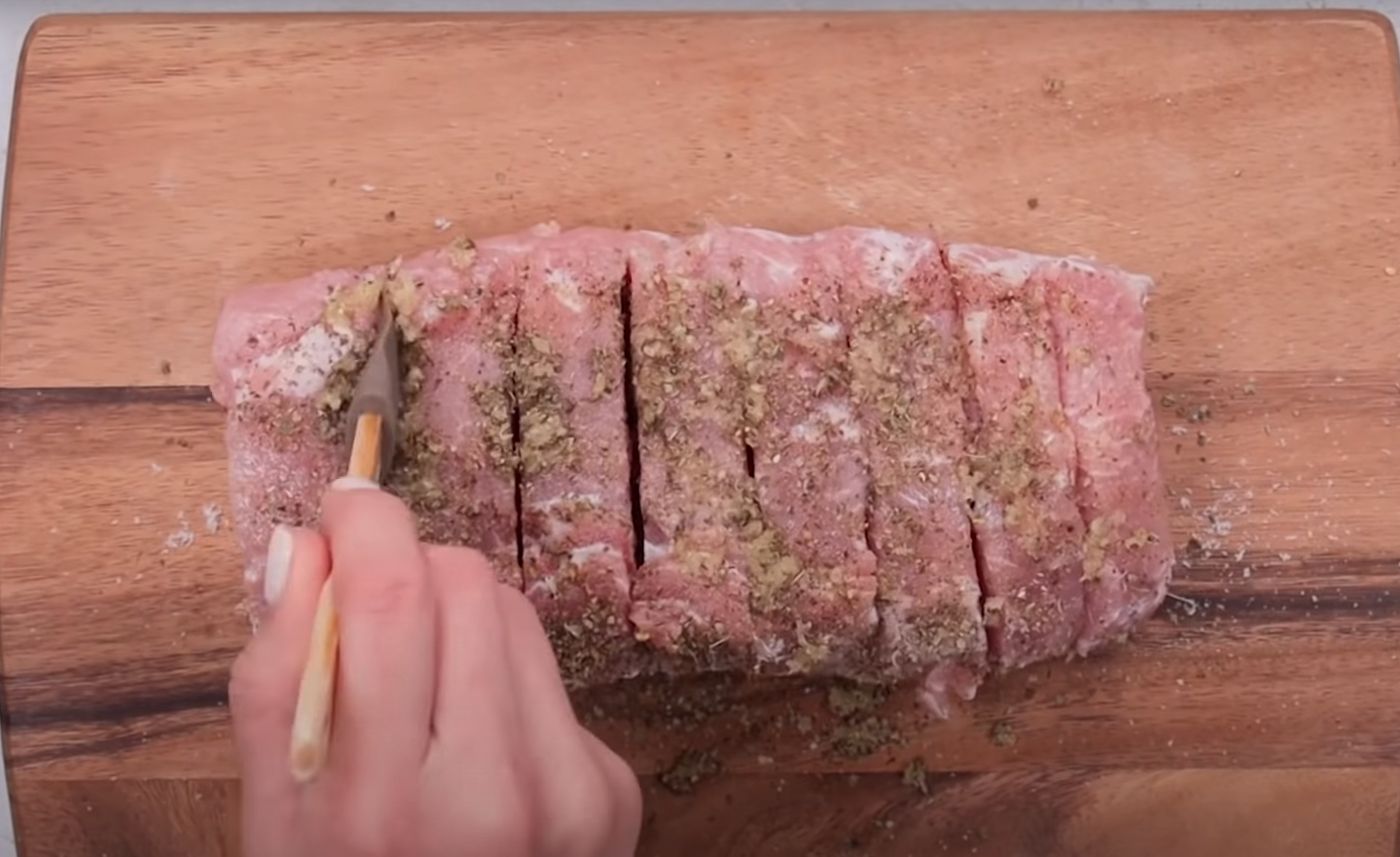 1.Natnij ostrym nożem schab, tak jak pokazane jest na zdjęciu poniżej.