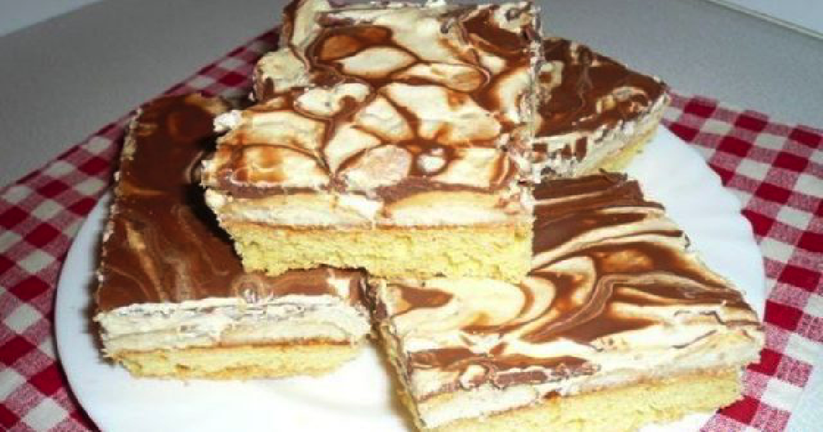 8.Całe ciasto polej czekoladową polewą, robiąc wzory nierównomierne ( albo inne dowolne), i na kilka godzin wstaw do lodówki. To wszystko!