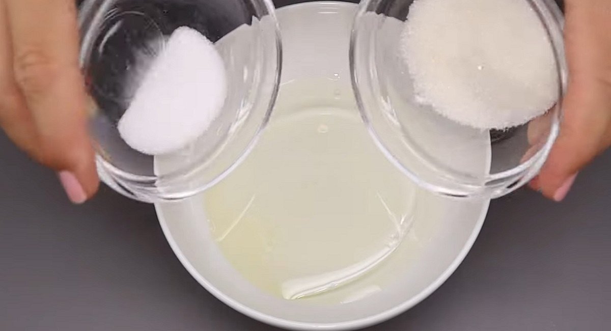 3. Przygotuj dressing: Wodę wymieszaj z octem (9%), solą, cukrem i olejem do uzyskania jednolitej konsystencji.