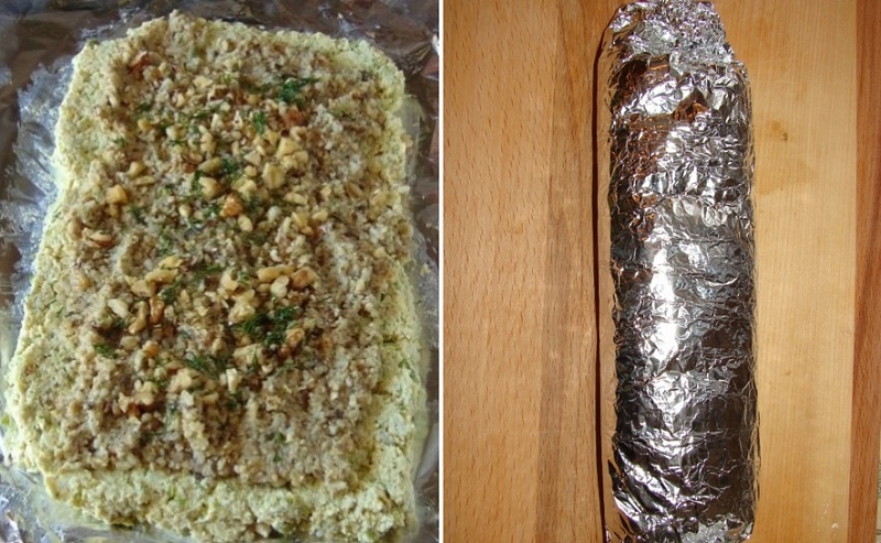 6. Teraz zawiń ciasno w rulon, owijając roladę folią i wstaw do lodówki na godzinę. Gotowe!