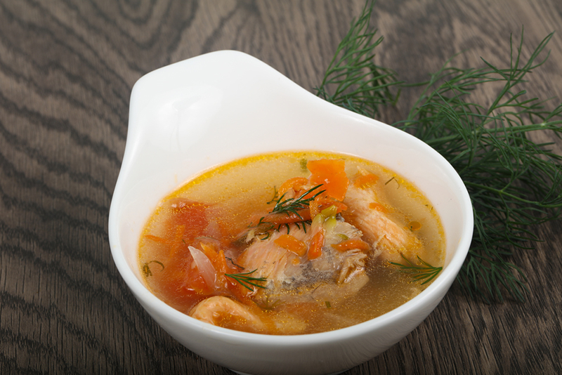 4. Kiedy ziemniaki będą już miękkie, dodaj podsmażoną cebulkę z marchewką, rybę i posiekane świeże zioła. Dopraw do smaku solą i pieprzem. Całość gotuj jeszcze przez 10 minut. Gotowe!