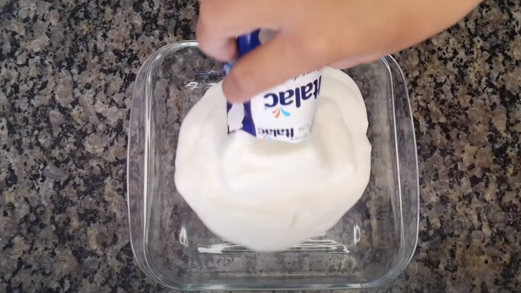 Do miski wlej 500 ml śmietany, a następnie dodaj mleko i wymieszaj wszystko za pomocą miksera.