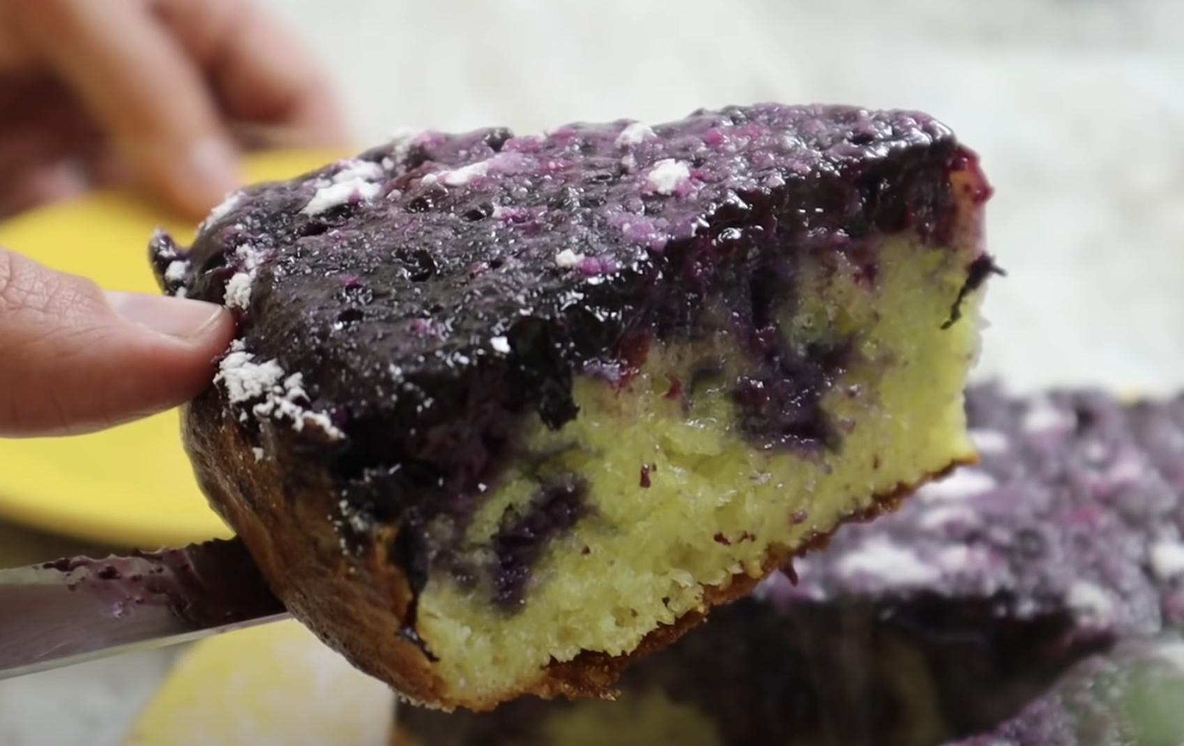 5. Zalej borówki w formie przygotowanym ciastem i wygładź powierzchnię.