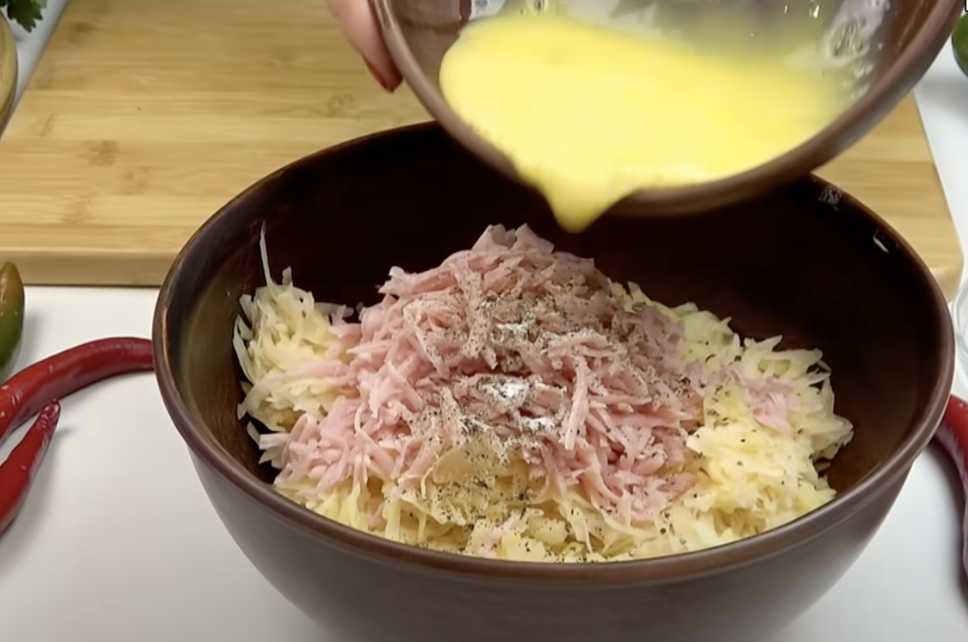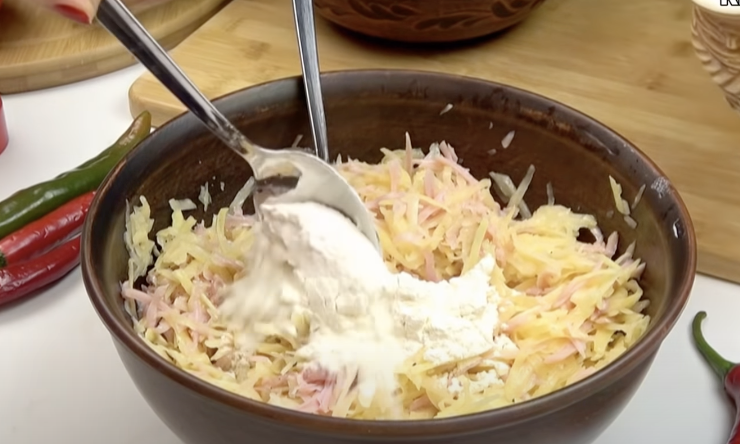 Szynkę pokroić lub zetrzeć na tarce. Jeśli nie posiadasz szynki, możesz dodać również salami.