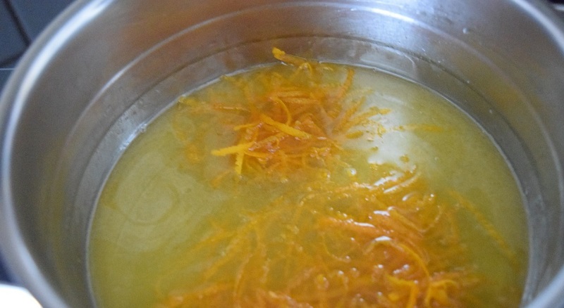 9. Następnie, dodaj skórkę pomarańczową i gotuj przez 5 minut od czasu, gdy woda zacznie wrzeć – bez mieszania.