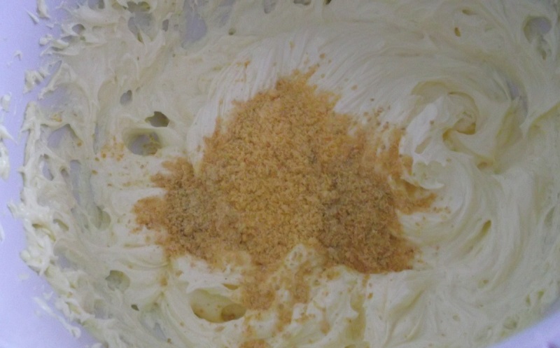 11. W misce, ubij 160 g masła, stopniowo dodawaj syrop pomarańczowy. Krem powinien być gładki i jednolity.