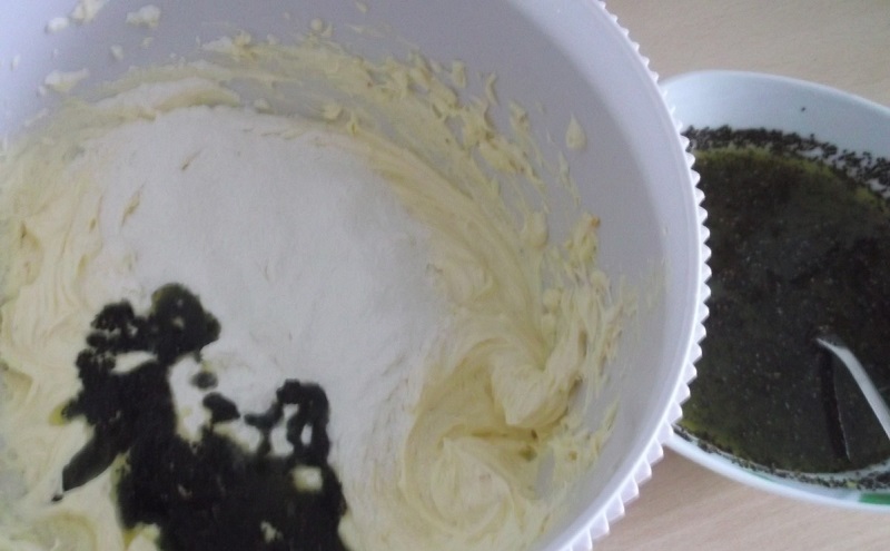6. Na przemiennie z mąką, dodawaj również mak (wraz z sokiem). Ubijaj do czasu, aż ciasto będzie gładkie i jednolite. Gotowe ciasto przełóż do formy, wysmarowanej olejem.