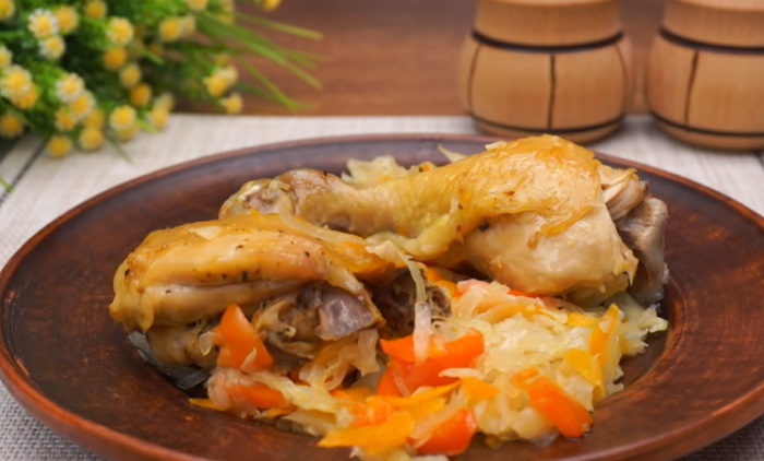 2.Przygotowanym sosem posmaruj całe mięso, po czym przechowuj w lodówce przez 30-40 minut. Za pomocą tarki zetrzyj marchew, następnie obraną cebulę kroimy w półksiężyce, a kapustę drobno siekamy.