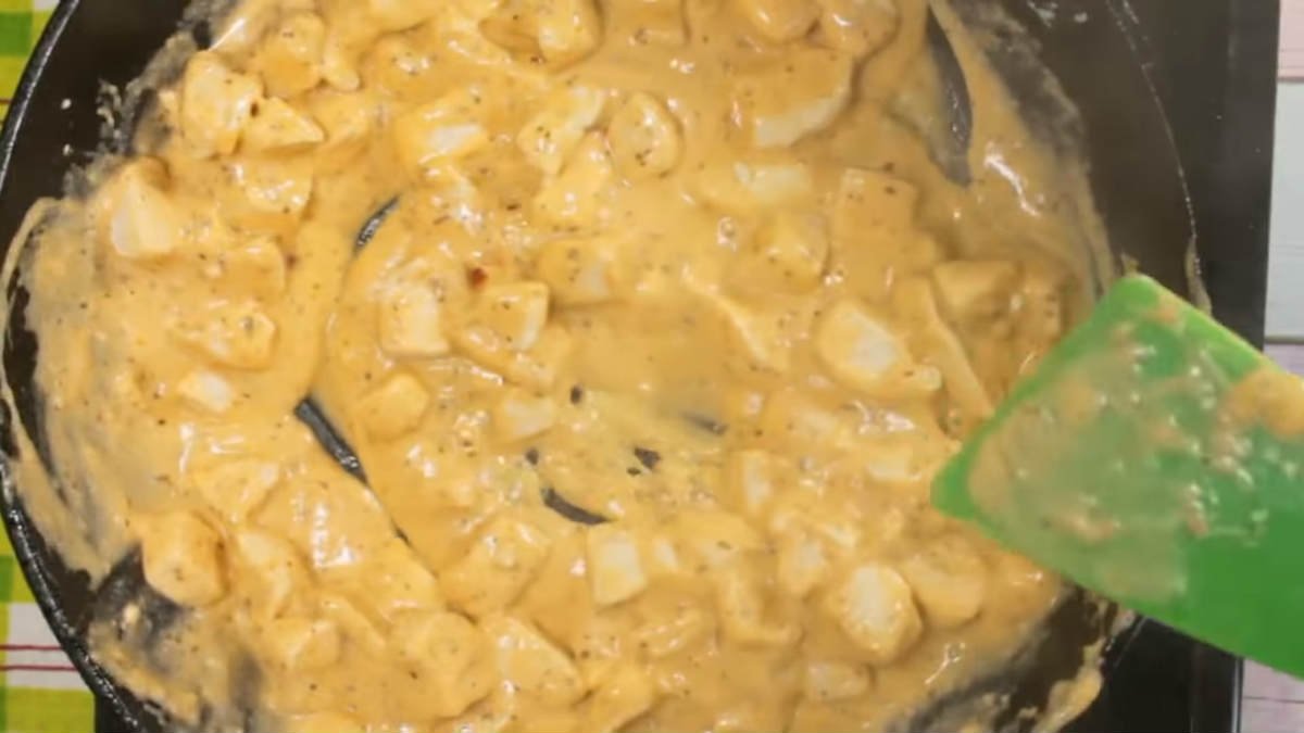 1. Filet z kurczaka umyj, osusz ręcznikiem papierowym i pokrój na małą kosteczkę. Potem, usmaż go na rozgrzanej patelni z olejem, doprawiając do smaku solą, przyprawą do kurczaka i mąką. Dobrze wszystko wymieszaj.