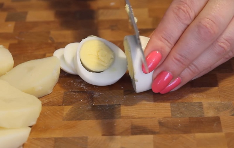 2. Jajka ugotuj na twardo, obierz i pokrój w plasterki.