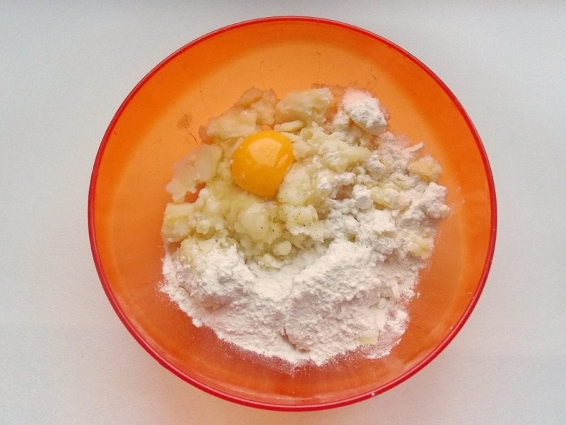 5. Do wystudzonego puree ziemniaczanego, dodaj jajko i mąkę. Dokładnie wymieszaj.