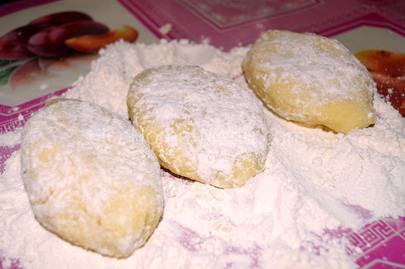 7. Zawiń farsz w masę ziemniaczaną, formując zgrabne kotleciki.