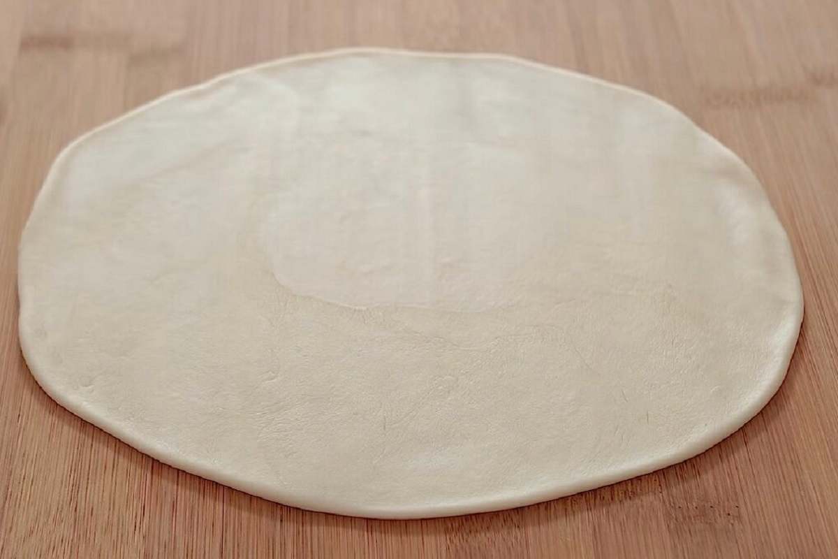 Upewnij się, że wszystkie krawędzie są złączone, tak aby cała zawartość znalazła się w cieście. Następnie rozwałkuj je lekko.