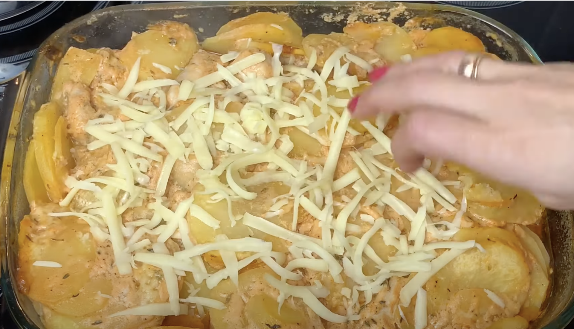 2. Mieszanka uzyskaną ze śmietany oraz soku pomidorowego , zalej przygotowane danie, do smaku posól ponownie oraz skrop olejem delikatnie. Przez 40 minut piecz w rozgrzanym piekarniku. W temperaturze 200 stopni piecz danie pod przykrytą folią, następnie pod koniec pieczenia folię tą zdejmij , startym serem posyp i piecze jeszcze chwilę , aż ser się rozpuści.