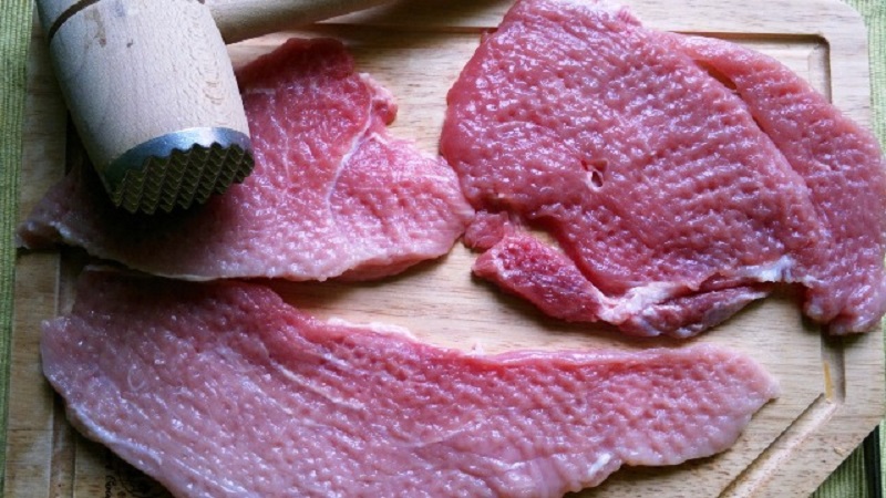 1. Mięso umyj, osusz papierowym ręcznikiem i pokrój na cienkie plastry. Potem, każdy plaster dodatkowo rozbij tłuczkiem, posyp pieprzem i skrop sokiem z cytryny. Przełóż do miski i wstaw do lodówki na pół godziny.