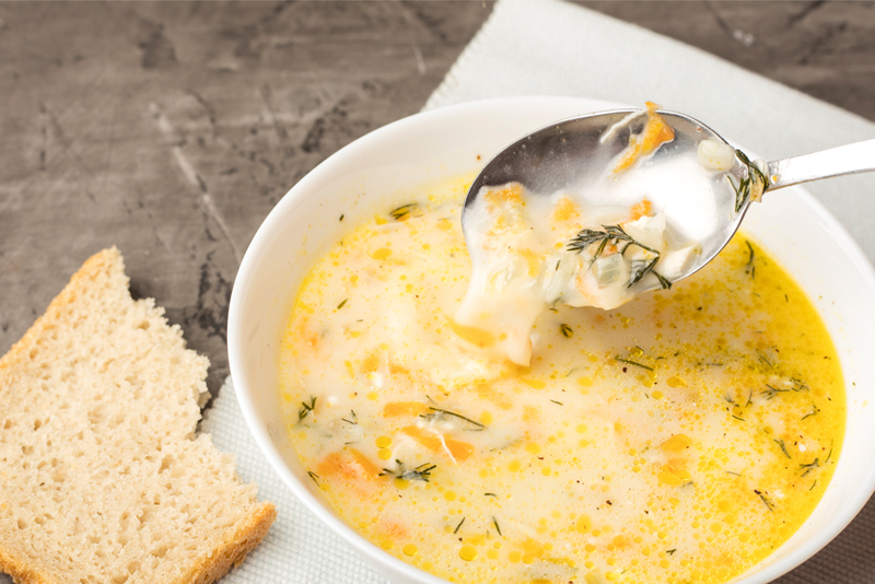 3. Tak przygotowaną zupę gotuj przez kilka minut. Dla lepszego smaku dodaj sól oraz ulubione przyprawy. Po kilku minutach gotowania podawaj ciepłą zupę na talerze. Koniecznie dodaj kleks śmietany oraz posiekane zioła.